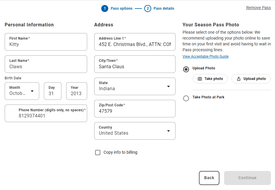 You can upload your photo as part of the Season Pass purchase process! When you’re filling out your name and address, the option to upload your photo is on the right.