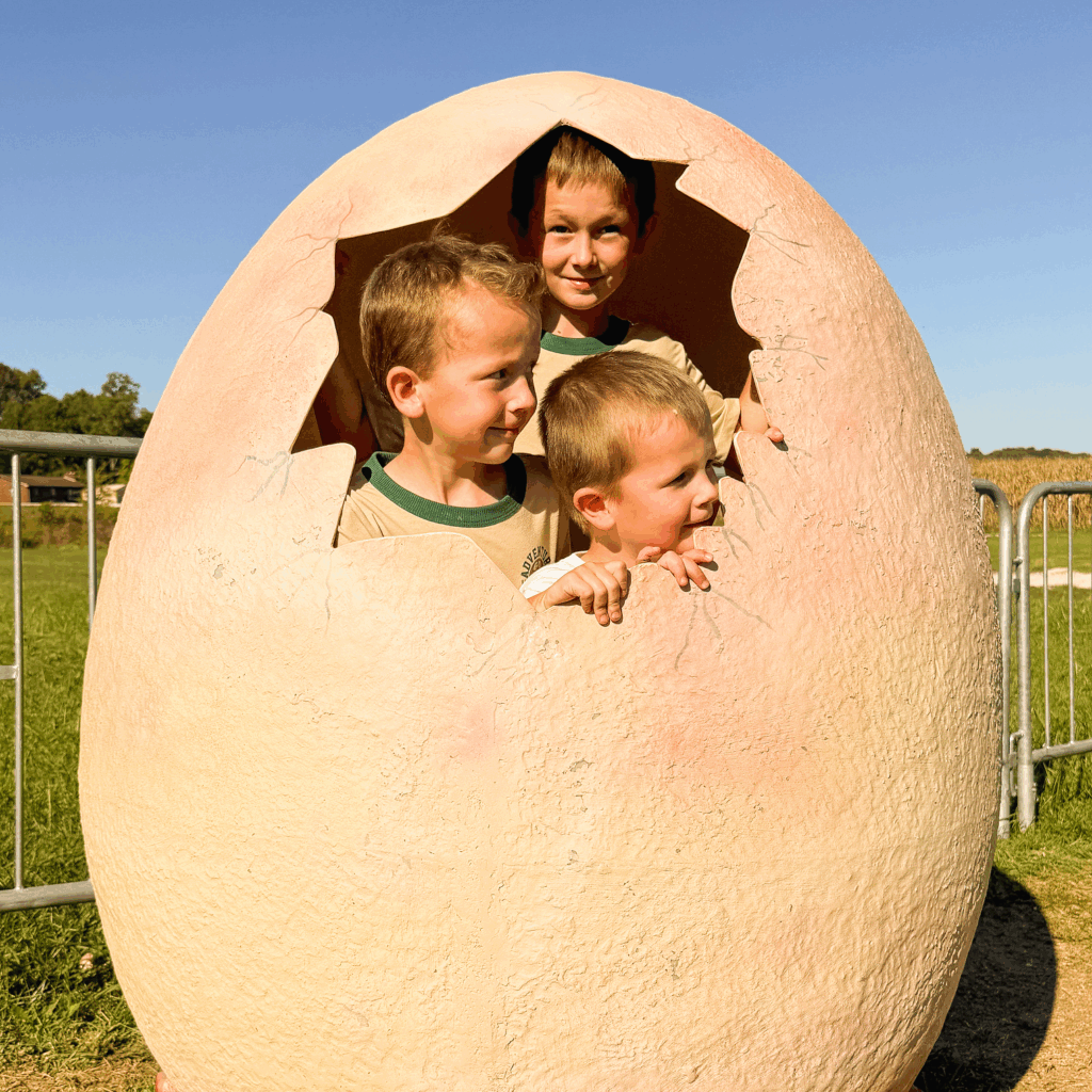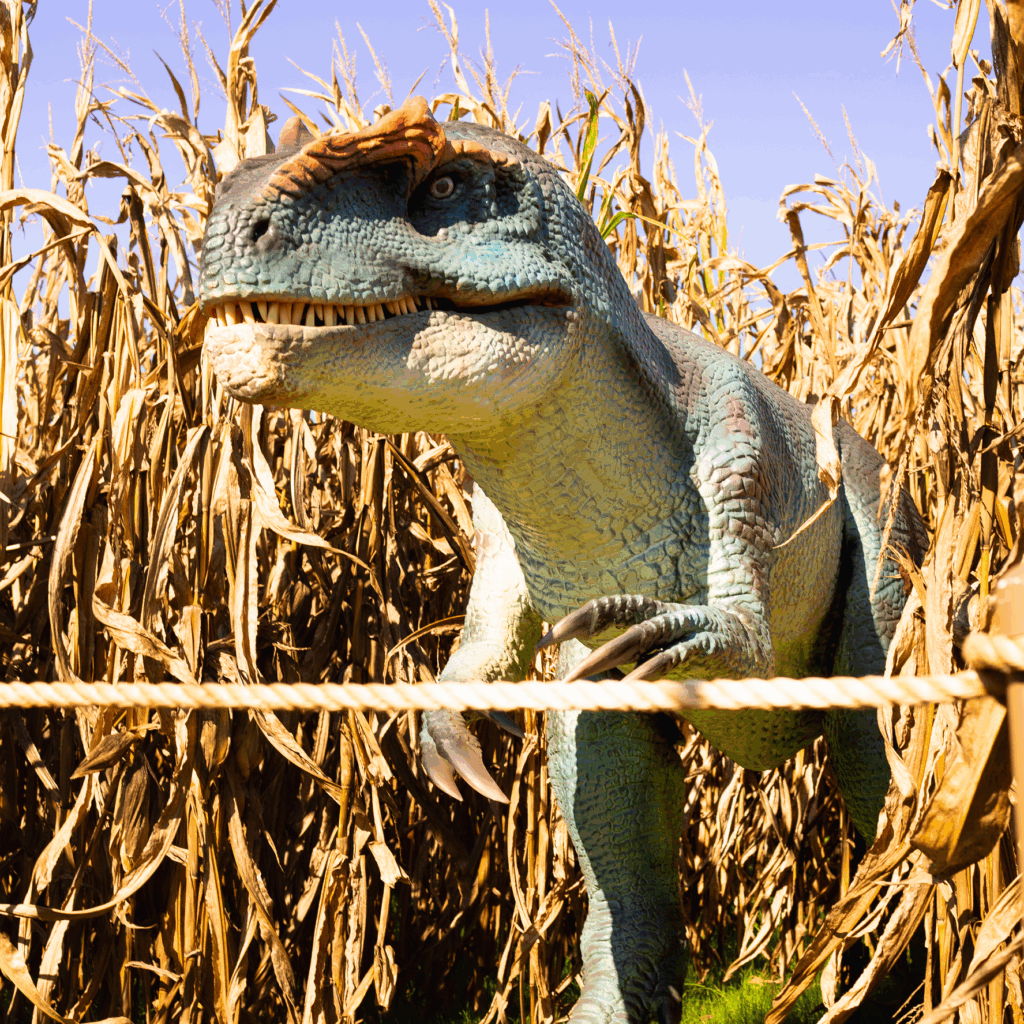 The Jurassic Party Plaza is one of our favorite fall spots. From the crunching leaves and sun setting to the hum of a tractor. We conquered the Dino Corn Maze and headed back for a few more rides before night falls and the Dinos Soar!
